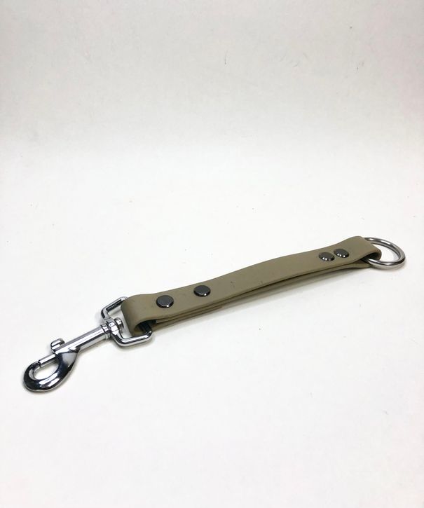 Der Adapter aus robuster Biothane ist die Verbindung zwischen Unterteil und Handschlaufe/Kurzführer unseres Mix & Match Leinensystems. Du kannst durch diesem Adapter entweder einen Hund oder mehrer mit einem Leinenstück bequem Gassi führen. Der Adapter hat eine Gesamtlänge von 25 cm.