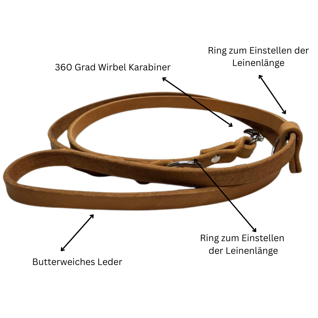 Koppelleine aus weichem Leder/ Set mit Umhängeleine/Crossbody
