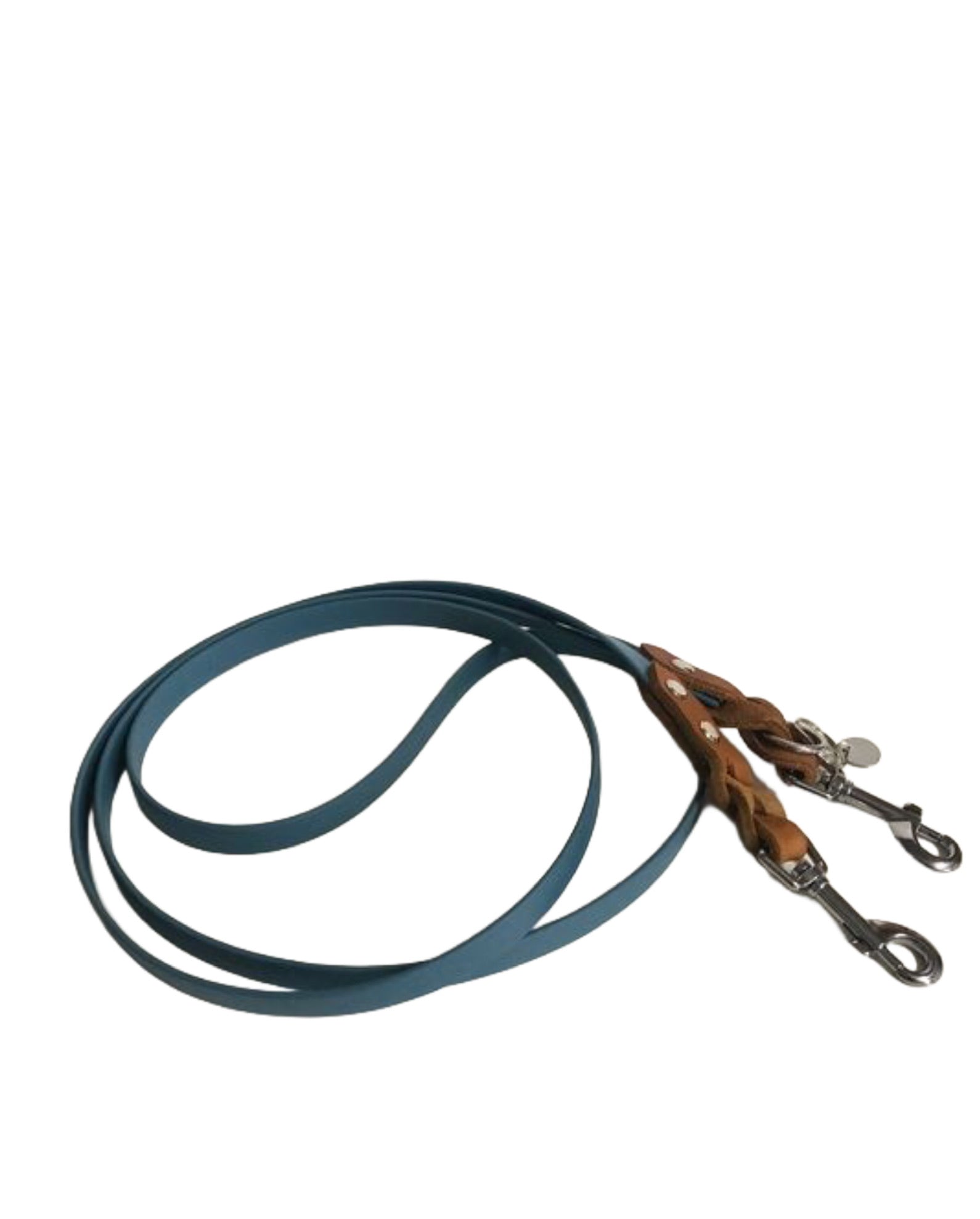 Verstellbare Biothane-Leine in Petrol mit teilgeflochtenen Lederakzenten