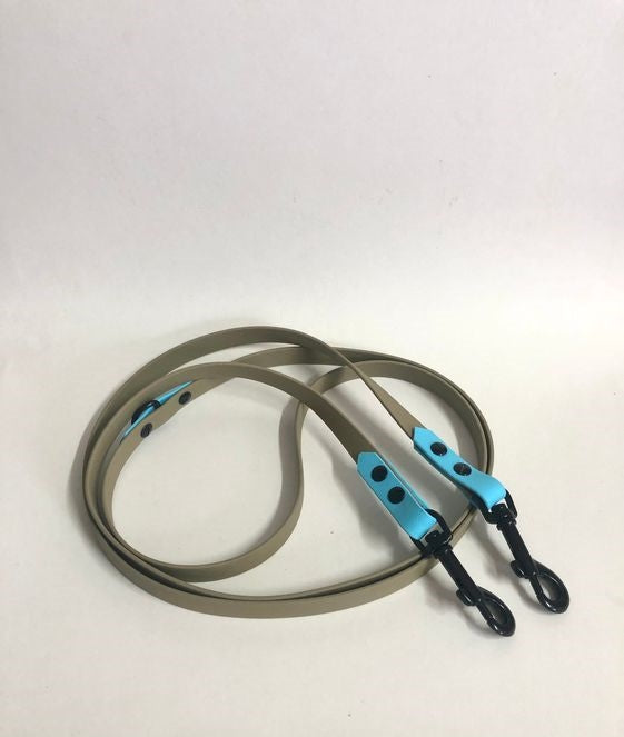 Verstellbare Biothane-Leine in Sagegrün mit türkisfarbenen Akzenten