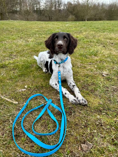 Biothane: Einfach mit einem feuchten Tuch abwischen. Wasserfest und sehr pflegeleicht.