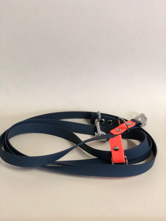 Diese Leine vereint Funktionalität mit modernem Design. Die 2-fach Verstellbarkeit ermöglicht flexible Einsatzmöglichkeiten – ob als kurze Führleine oder längere Laufleine. Die hochwertigen silbernen Beschläge mit neon-orangen Akzenten setzen sportliche Highlights und sorgen für Langlebigkeit. Die 20 mm Breite bietet zusätzliche Stabilität für mittelgroße bis große Hunde.