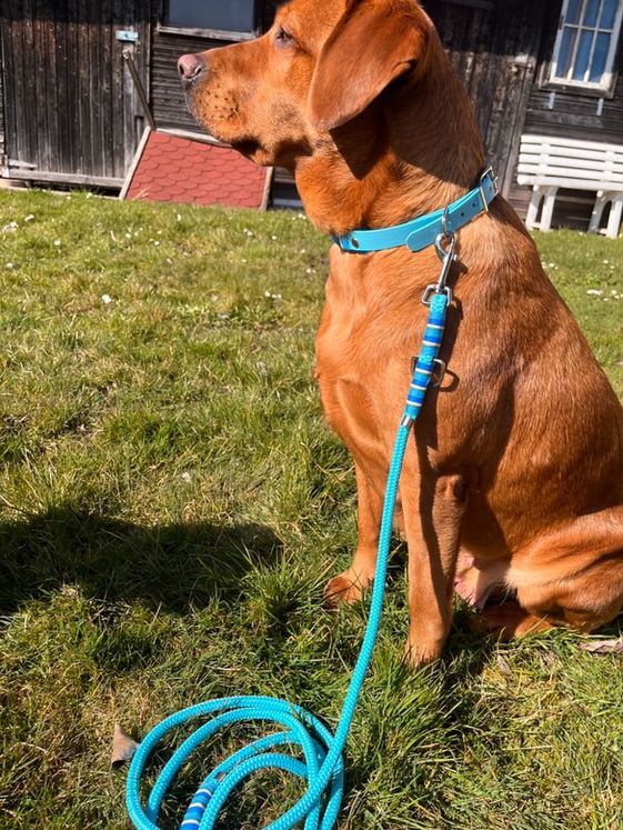 Biothane: Einfach mit einem feuchten Tuch abwischen. Wasserfest und sehr pflegeleicht.